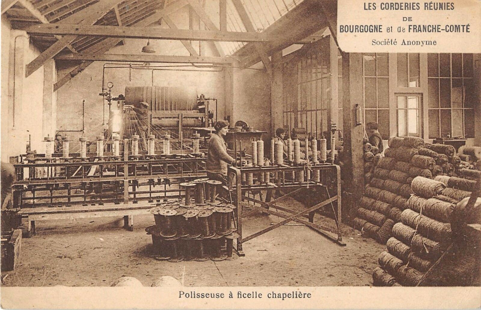 Version 1 : LES CORDERIES REUNIES DE # BOURGOGNE et de FRANCHE- ComTE Société Anonyine Polisseuse à ficelle chapelière