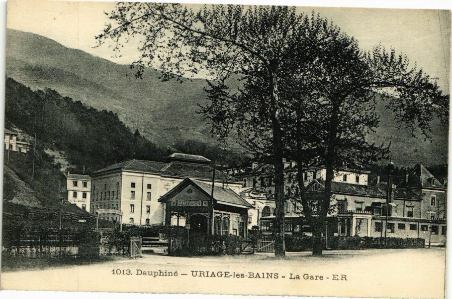 Version 2 : 1913 Dauphiné. Uriage-les-Bains — La gare. ph. Duchemin Papeterie des Alpes Eug. Robert, Grenoble