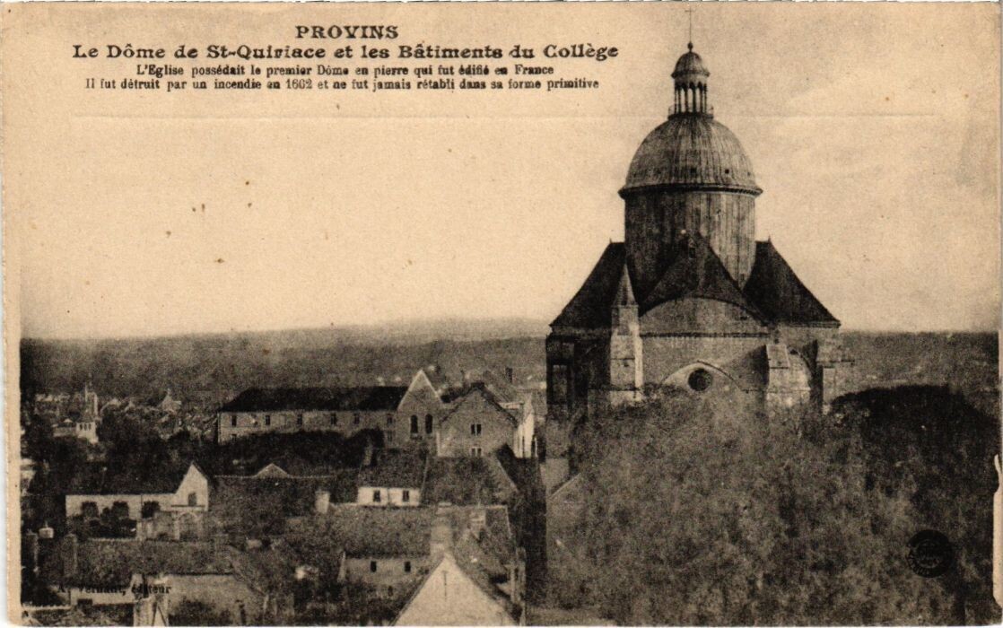 Version 3 : PROVINS Republioue frAncAiSE Le Dôme de S:-Qulriace et les Batinents du Collège [l fut detrun par UR iuccndie cn 1gu2 et ue fut jamais relabli dans 8a lorme pmilive 78 2 Aov NE