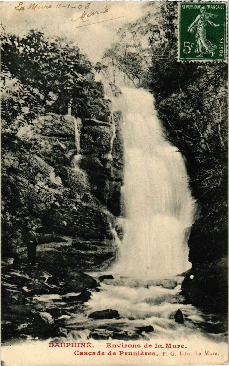 Version 3 : 22 Mlevee U = = 0 & REPUBLIQUF fRANCAISE| 5 2 DAUPHINE Environs de laMure. Cascade de Prunières. G. Ediz, La Mcre 4ané