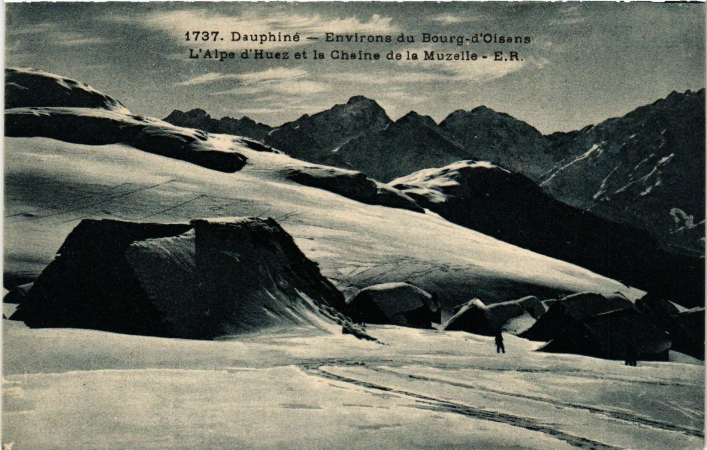 1737. Dauphiné - Environs du Bourg-d'Oisans - L'Alpe d'Huez et la Chaine de la Muzelle - E. R.