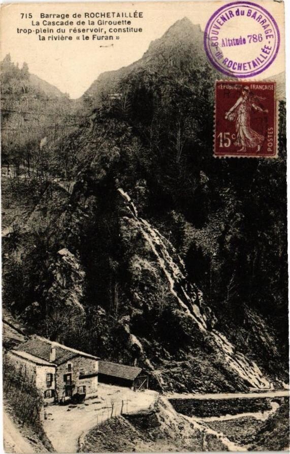 Version 3 : Du 715 Barrage de ROCHETAILLEE La Cascade de la Glrouette trop-plein du réservolr, constitue la rivière le Furan RDCHEINY 45 BARRAT ERIRc 786 Altutnde