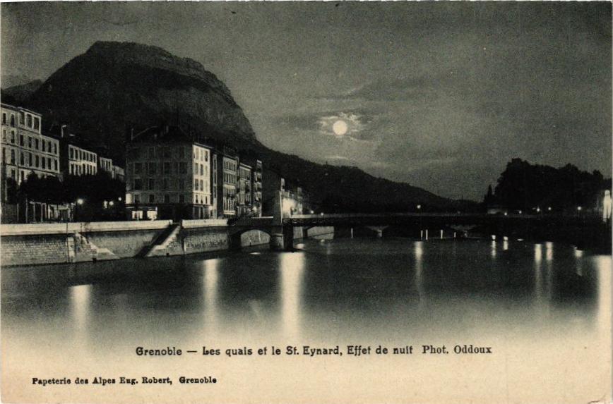 Version 3 : Grenoble bes quais et le St. Eynard, Effef de nult Phot. Oddoux Pspeterie dee Alpen Euk. Robert; Grenoble