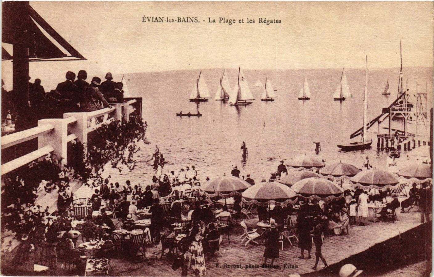 Version 3 : EVIAN-les-BAINS . La et les Régates Hcobui; phoro- Plage