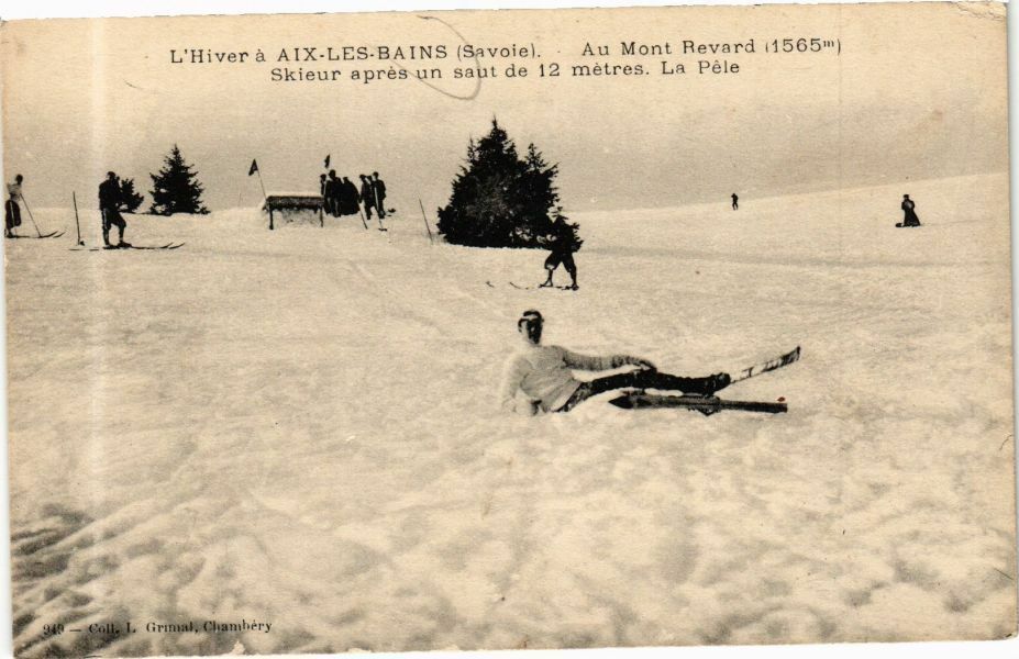 Version 1 : L'Hiver à AIX-LES-BAINS :Savoie1. Au Mont Revard 1565 Skieur aprés un saut de 12 metres. La Pcle e . pe ad Am. a 07 .- : a