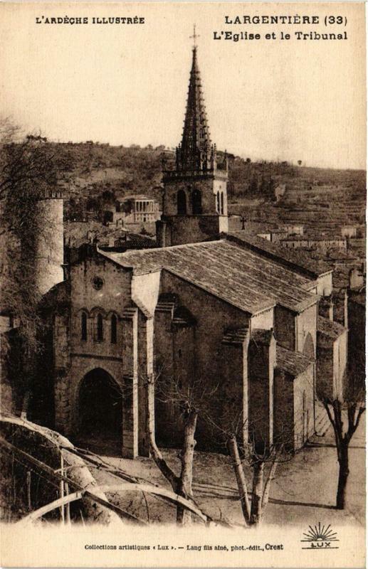 Version 1 : L'ARDECHE ILLUSTREE LARGENTIERE (33) L'Eglise et le Tribunal Colldetions artistiques « Lux ». — Lang fils aîné, phot-éait, Crest