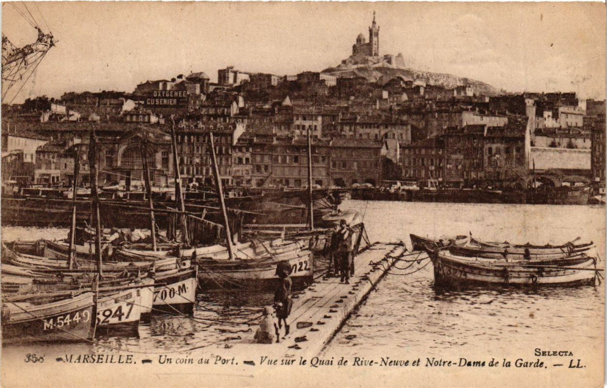 Version 1 : 4 *, A - SeLaecTA ISA SMARSEILLE, em Un coin da Port, =a lue sir le Quai de Rive-Neuve et Notre-Dame de la Garde. — LL.