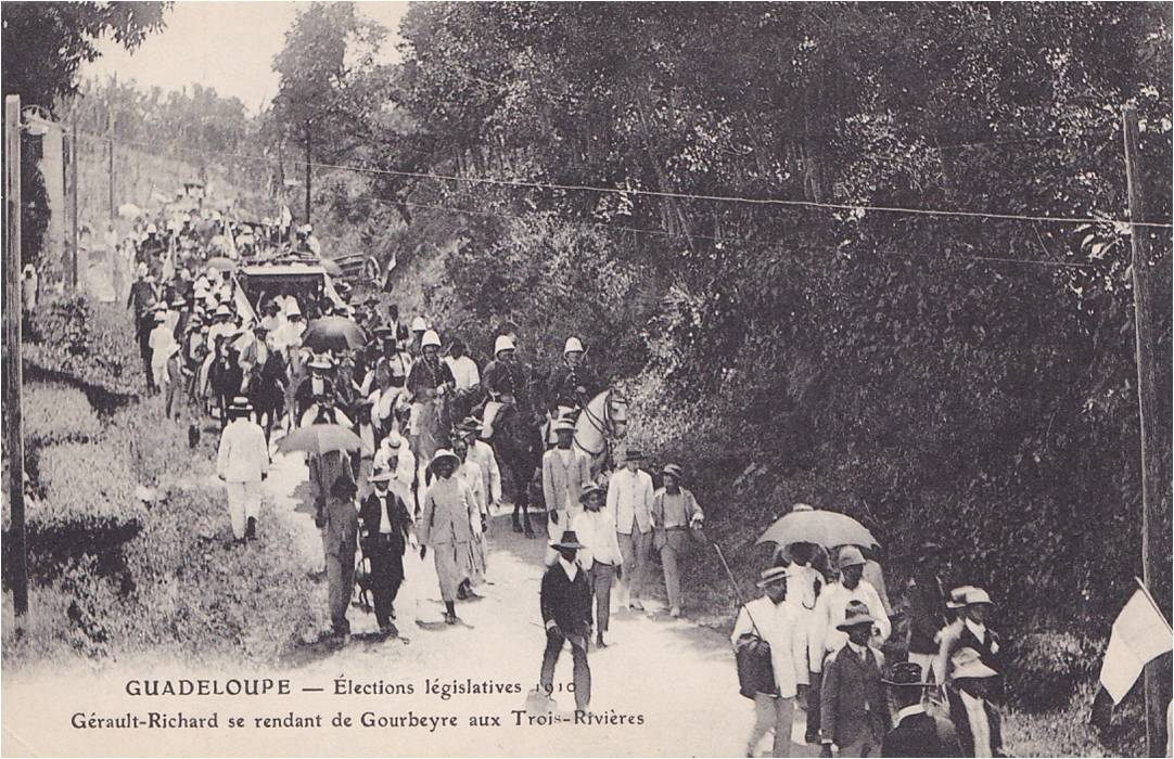 Version 1 : GUADELOUPE — Elections législatives 18 Gérault-Richard se rendant de Gourbeyre aux Troi--Rivières