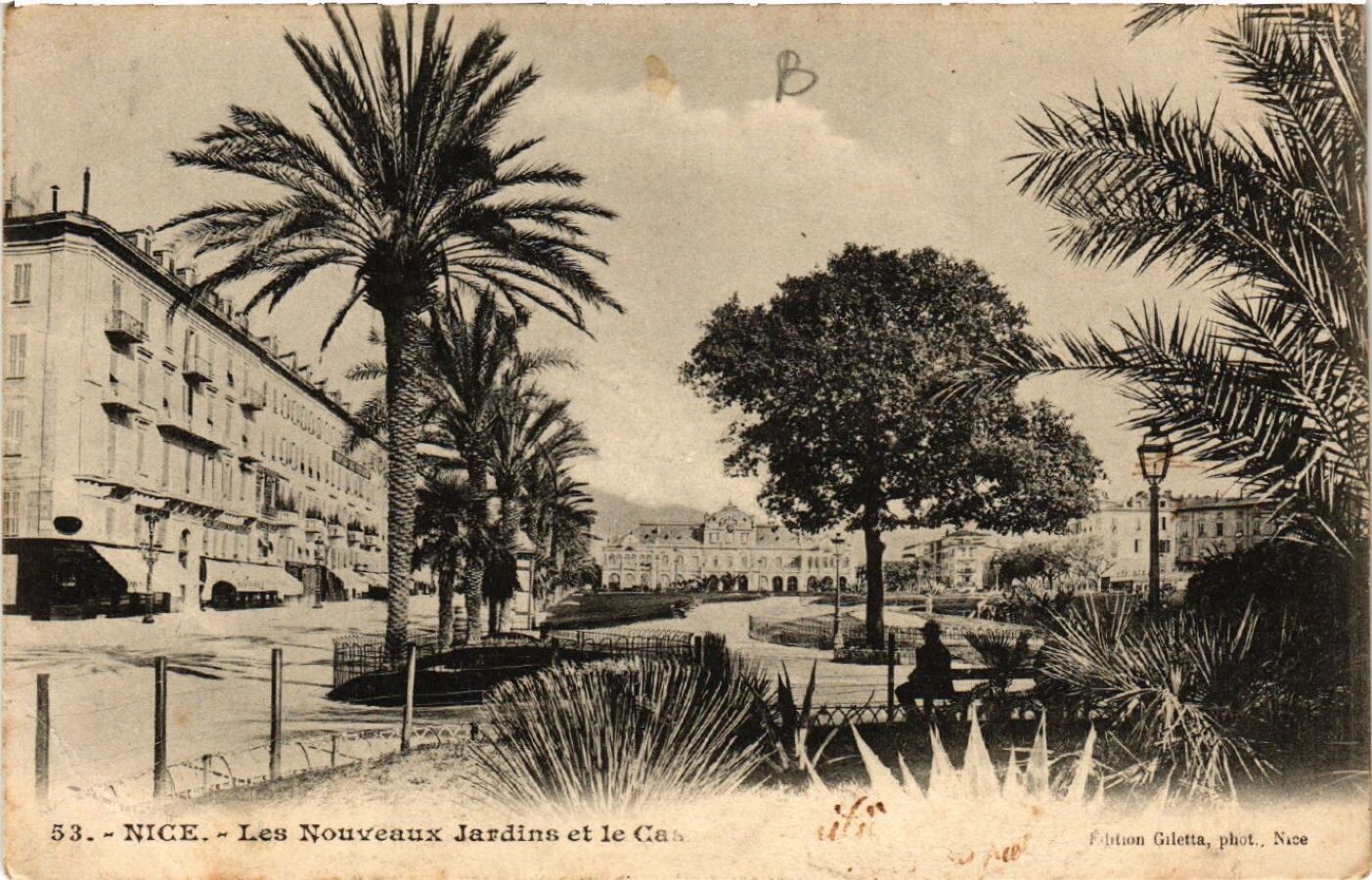 Version 2 : Edition Giletta, phot., Nice. 53.- NICE.» Les Nouveaux Jardins et le Casino