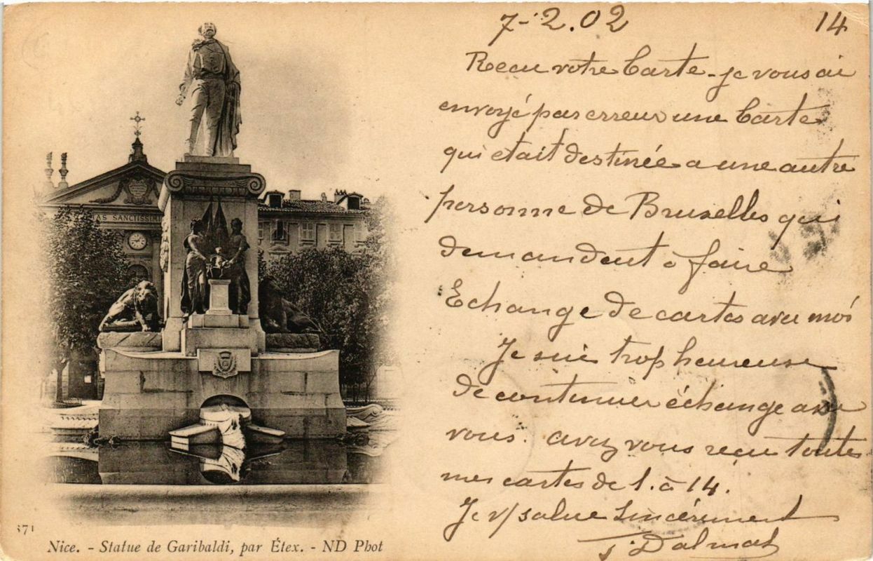 Version 3 : 02 14 Recevoh Vol @L eavrlefpen Je elfsestaa _ ad 82~ ael Mud d-+4 Beu 9gu. Vlll Tud 2l7 eai 8c4.à- 4 Vice. Statue de Garibaldi, par Etex. ND Phot 2D23 7-'2 4+ ecbensk Cuvy