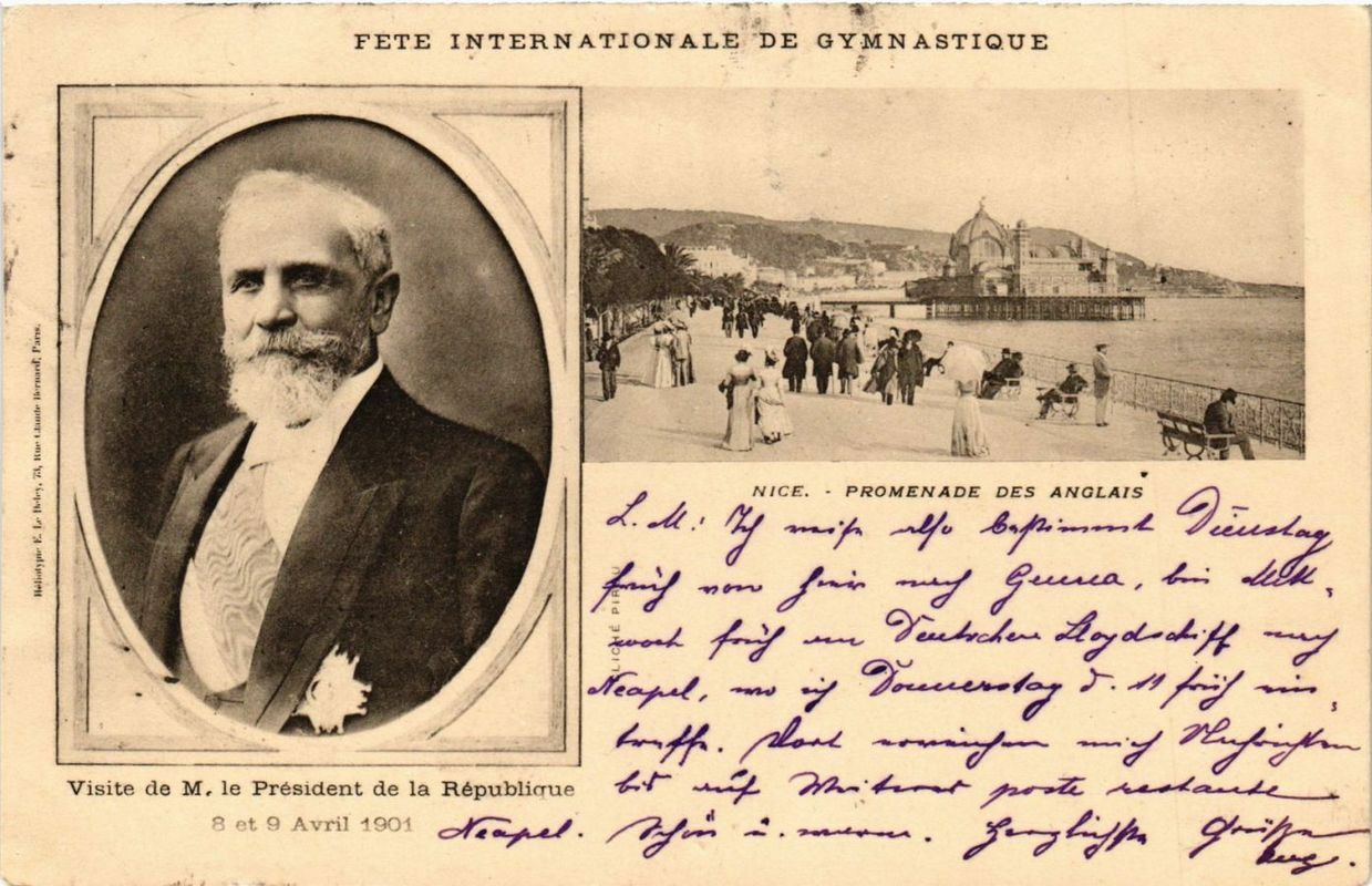 Version 3 : FETE INTERNATIONALE DE G YMNASTIQUE ! NICE. PROMENADE DES ANGLAIS g 2enc Visite de M. le Président de la Republique 8 et 9 Avril 1901