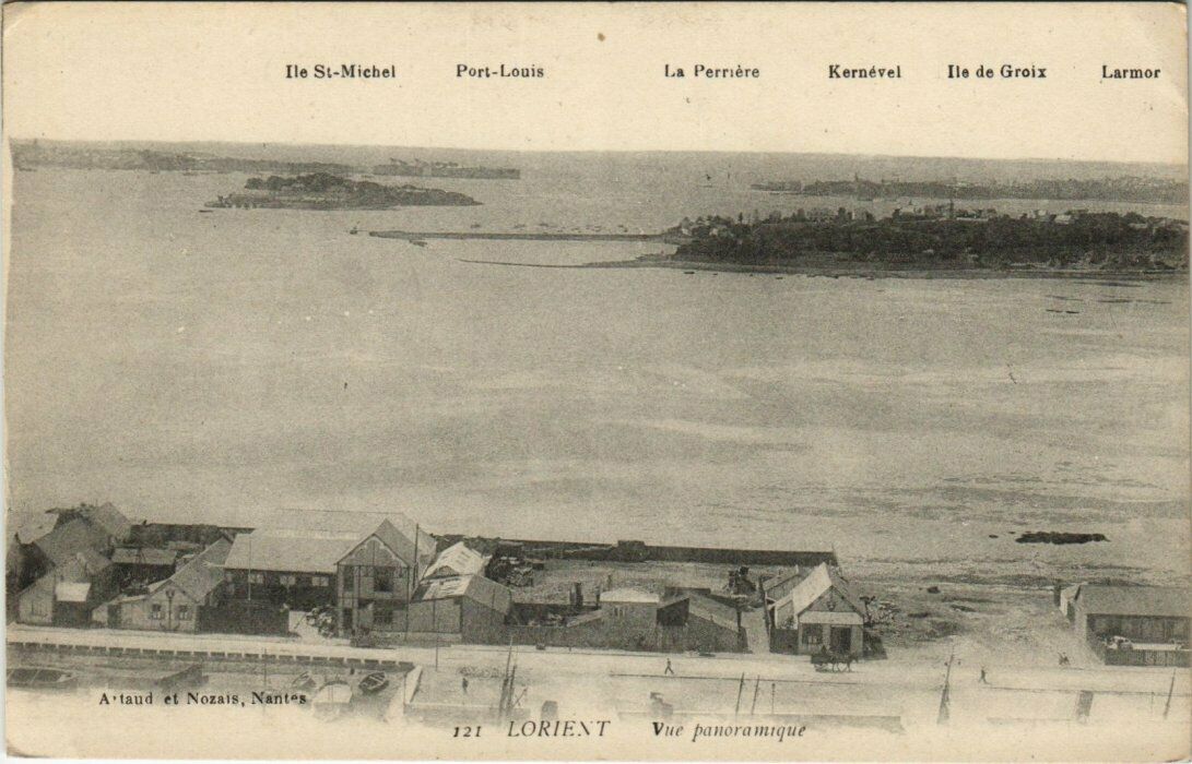Version 2 : | Ile St-Michel Port-Louis La Perrière Kernével Te de Groix Larmor = M 121 LORIENT Vue panoramique
