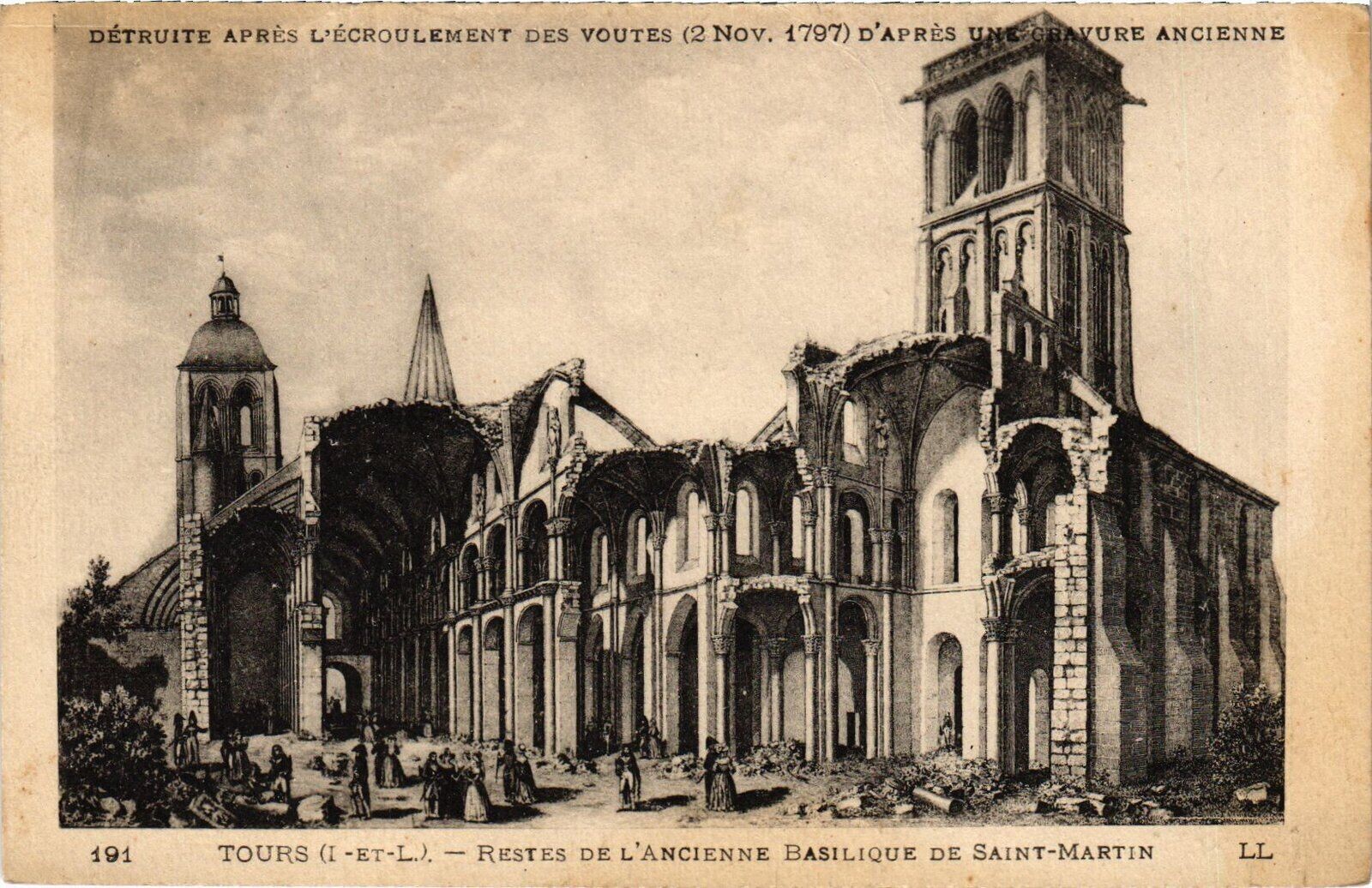 Version 3 : TOURS Restes de Tancienne Basilique de Saint Martin, détruite après l'écroulement des voûtes I9I novembre 1797), daprès une gravure ancienne LL