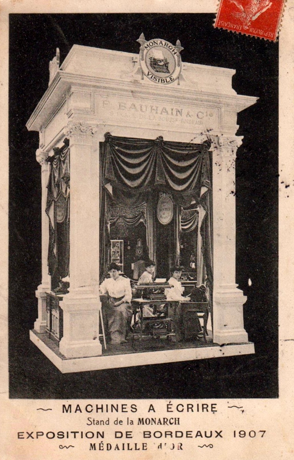 Version 2 : — MACHINES A ECRIRE —, Stand de la MONARCH EXPOSITION DE BORDEAUX I907 e- MEDAILLE d'IR :——