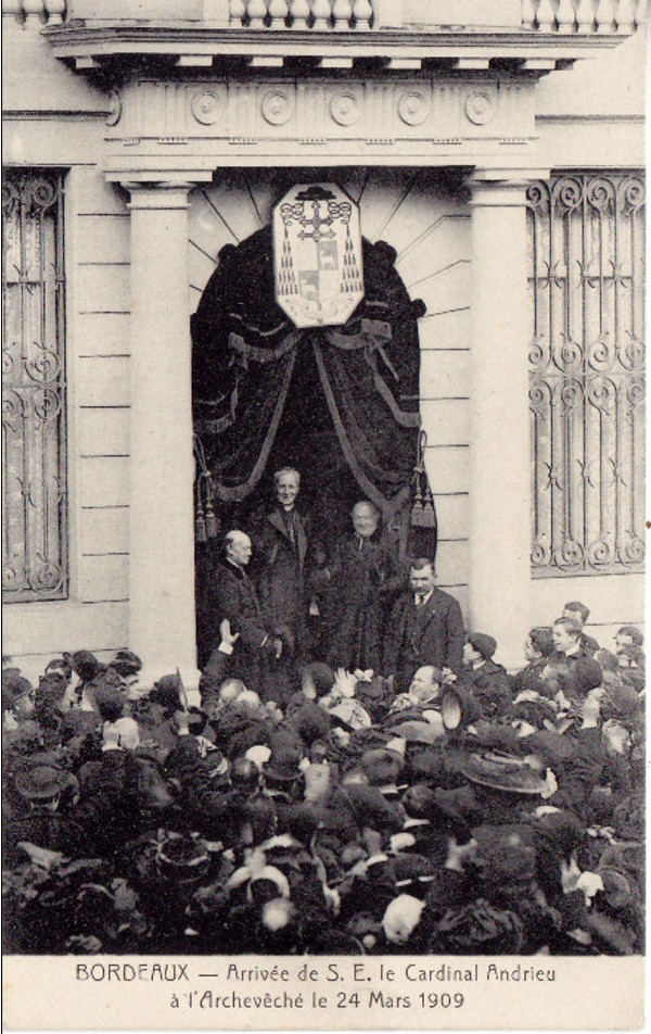 Version 3 : BORDFAUX Arrivée de 5.E.le Cardinal fndrieu à | rchevêche le 24 Mars 1909