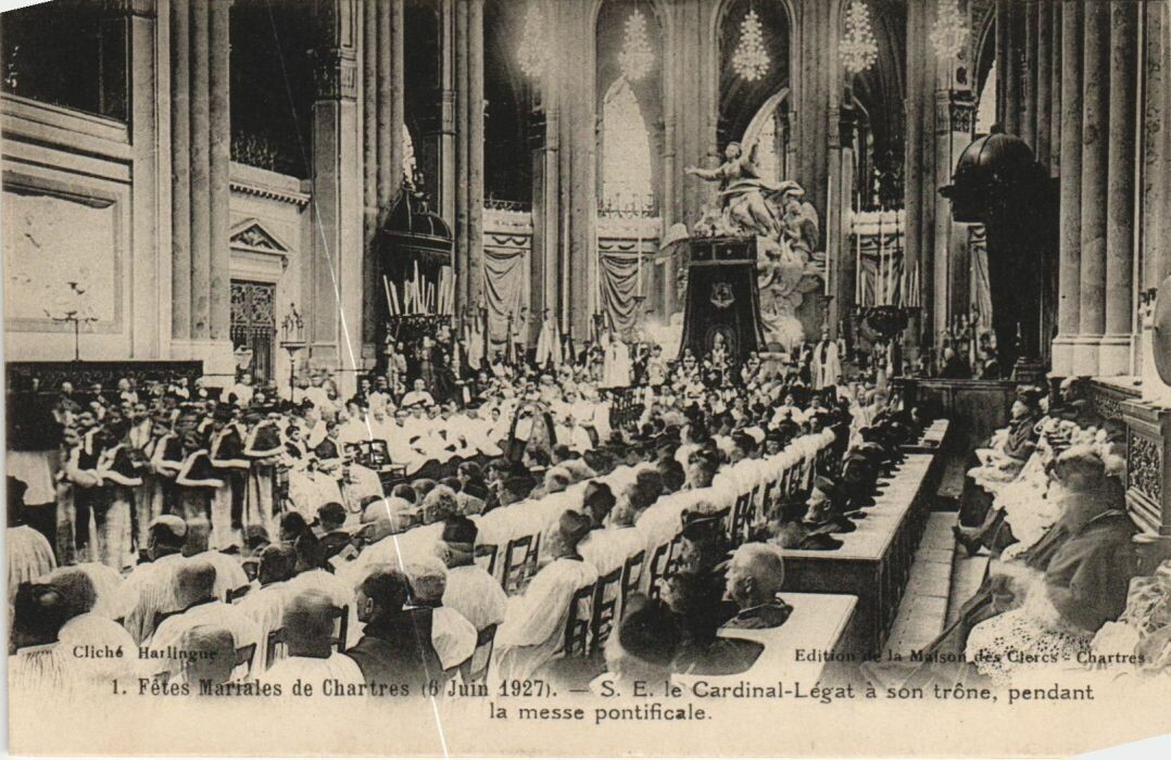 Version 3 : Cliche Harllnp Edition Clercs 'Chartres 1 Fêtes Mariales de Chartres (6 Juin 1927). s E le Cardinal-Légat à son trône, pendant a messc pontificale_
