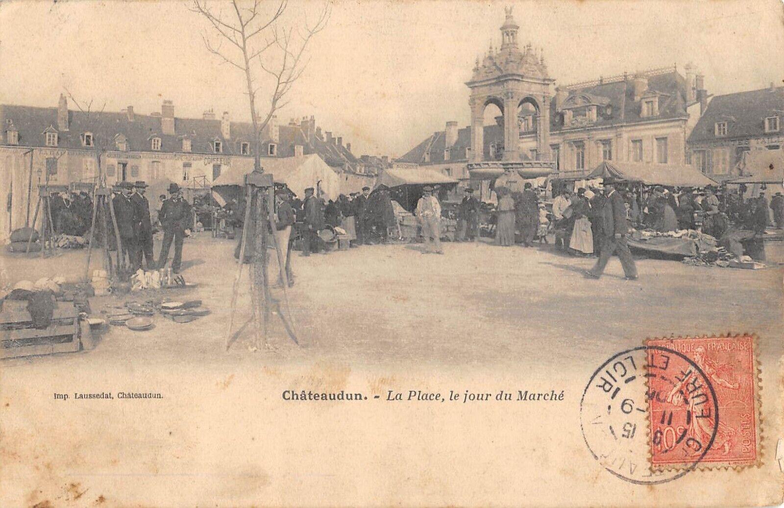 Version 2 : Châteaudun, - La Place, le jour du Marché ap avast, Chôtensdn-