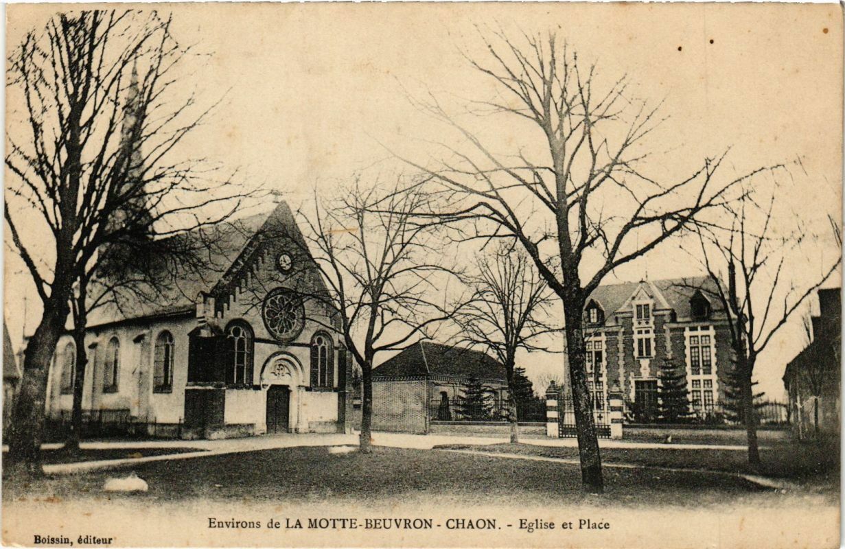 Version 1 : Environs de LA MOTTE-BEUVRON - CHAON. - Eglise et Place Boissin, éditeur