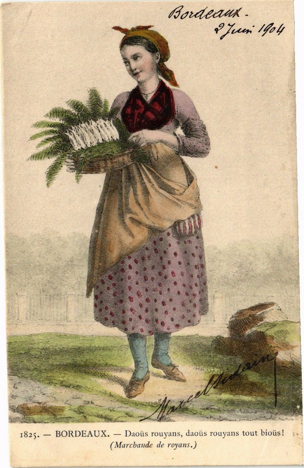 Version 2 : 1825. — BORL X. — Dioûs rouyans, daoûs rouyans tout bioûs! (Marchande de voya