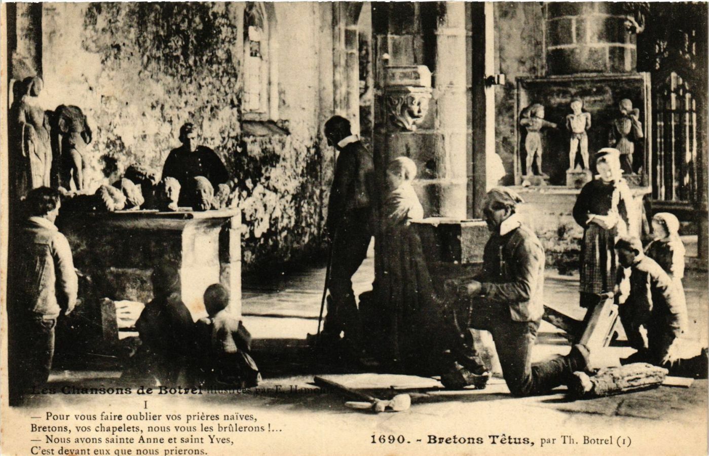 Version 1 : . epeusee= ï Ou A Pour vous raire oublier vos prières naives, Bretons, vos chapelets, nous vous les brilerons Nous avons sainte Anne et saint Yves, 1690. - Bretons Tetus, p« 1°. Botrel (1) C'est devant eux que nous pricrons.