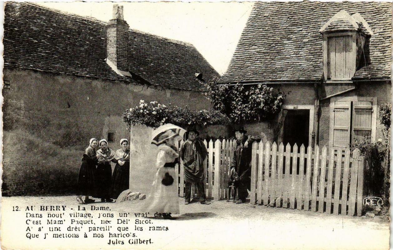 Version 2 : Me es 40 12. AU BFRRY La Dame. Dans nour' village, j'ons Un vra C'est Mam' Paquet, nee Dél' Sicot. A' s' tint drèr' pareill' que les rames Que j' mettons à nos harico's. Jules Gilbert.