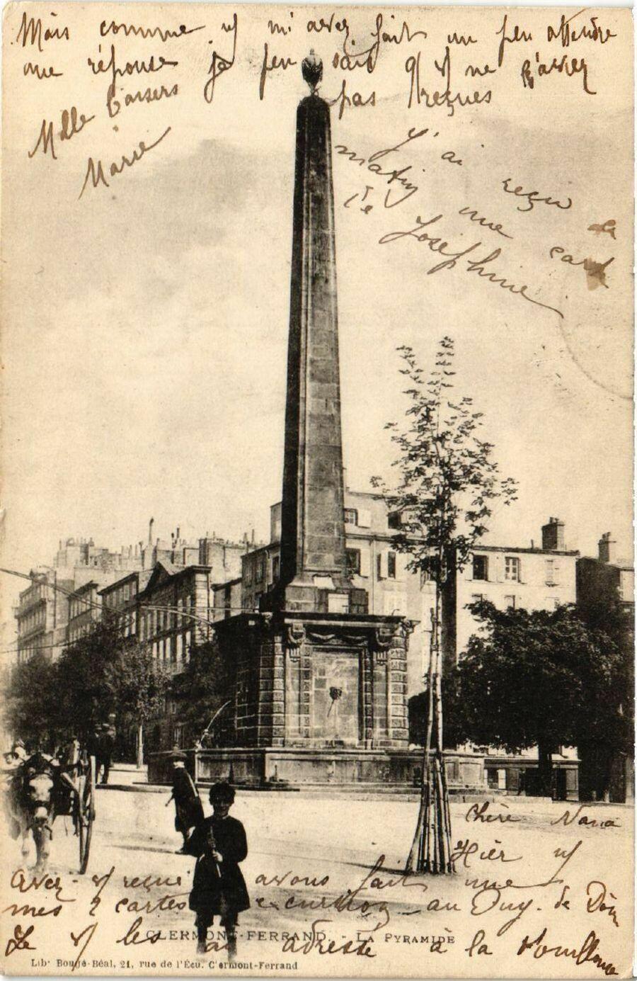 Version 2 : CLERMONT-FERRAND. - La PYRAMIDE D'afture danique 4 haute e | Ja Pyramide +4F um Tombe Mais zus lame versent Be L'e EF pour mElen l'ufile au Le L monument sf de fonte | g i ,