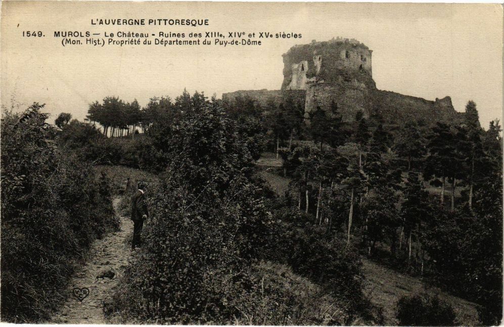 Version 1 : , L'AUVERGNE PITTORESQUE 1549. MUROLS — Le Château - Ruines des XIlle, X1V® et XVe siècles (Mon. Hist.) Propriété du Département du Puy-de-Dôme