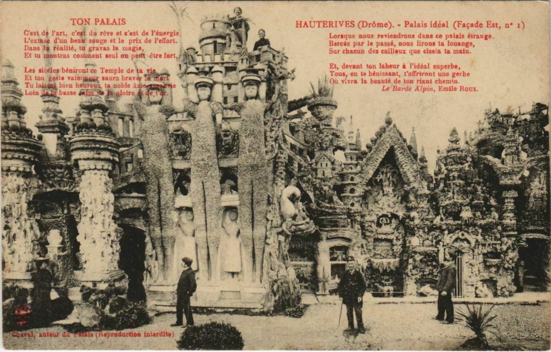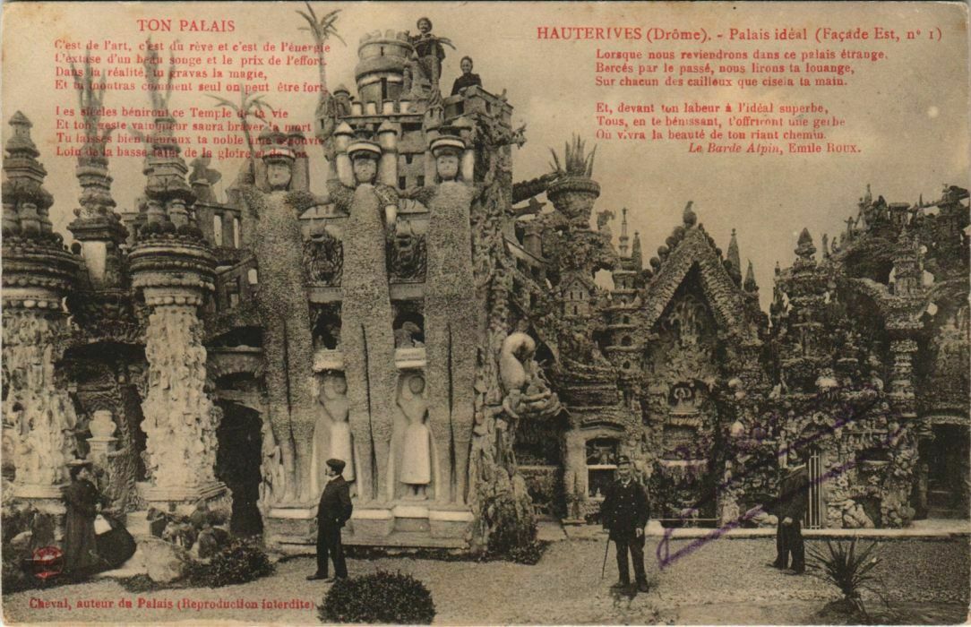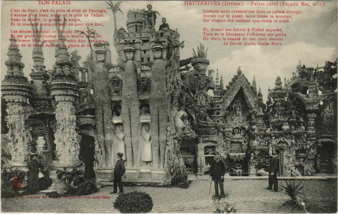 Version 3 : HAUTERIVES (Drôme) Palais idéal (Façade no Ami de la nature, Mais de naissance obscure, Ce qui rend souvent la vie dure, Je Pai subi sans murmure: IAuteur du Palais Auteur duPaluis (Reprod. iuterdite) Est,