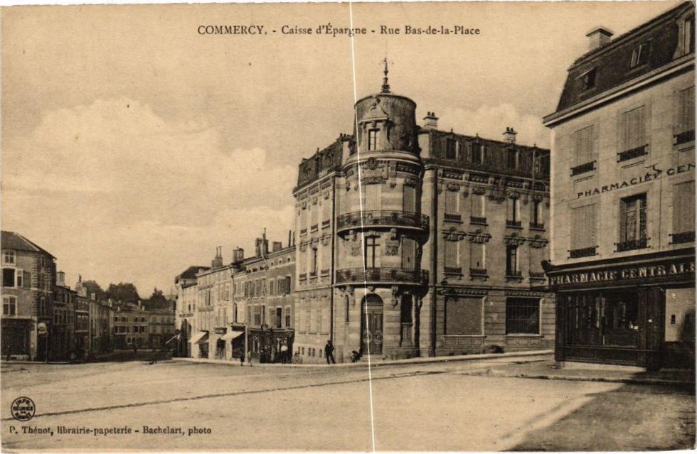Version 3 : COMMERCY. Caisse dEpargne et Rue Bas-de-la-Place 16 .5 Ov (^ 720527 Thenol, libraire, Commercy Photo Bacbelard Jia Ijam ~ GENI PHARMACIES