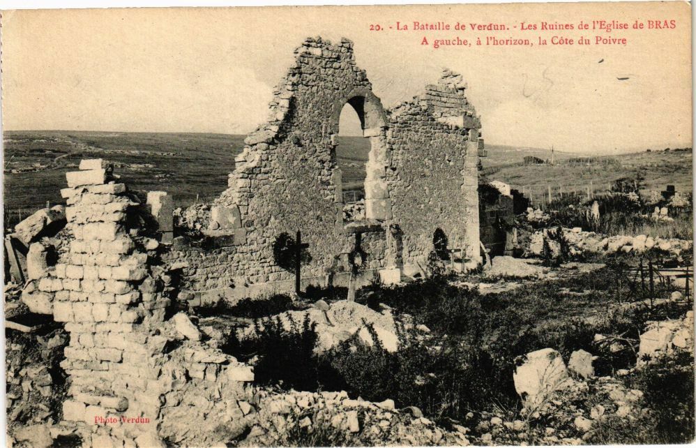 Version 3 : La Batalle de Verdun Les Ruines de FEglise de BRAS gauche, Thorizon la Côte du Poivre oto Verdun
