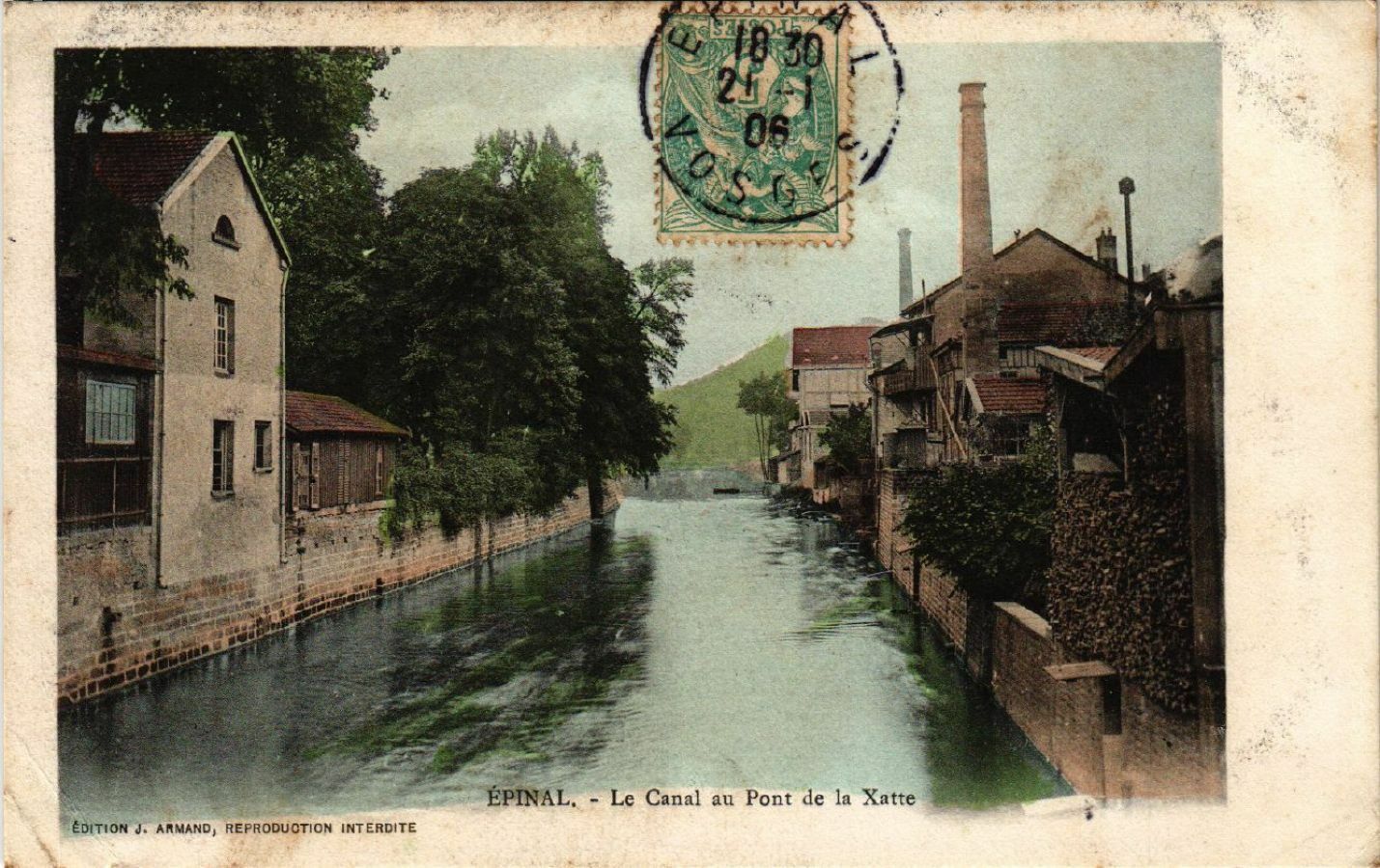 Version 3 : 830 0S EPINAL. Le Canal au Pont de la Xatte Edition J. ARMAND, REPRODUCTION INTERDITE 294 Ois (