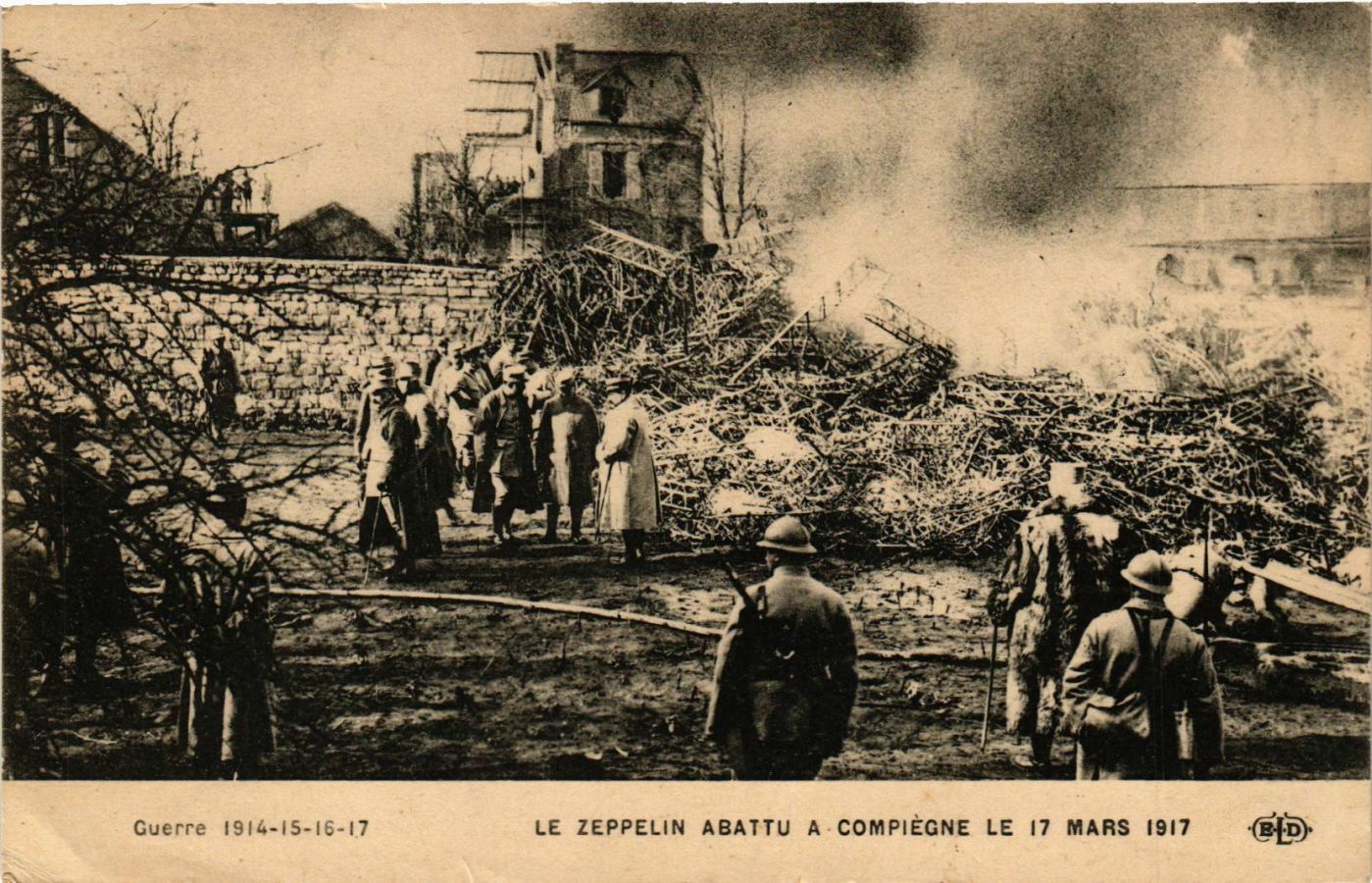 Version 2 : Amer Guerre 1914-15-16-17 LE ZEPPELIN ABATTU A COMPIEGNE LE 17 MARS 1917