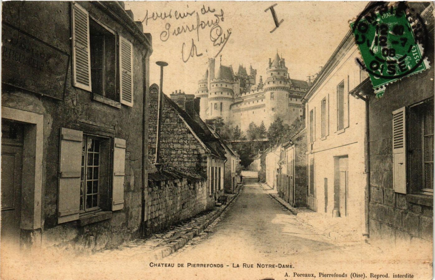 Version 1 : CHATEAU DE PIERREFONDS - LA RUE NOTRE-DAME. A. Poreaux, Pierreionds (Oise). Reprod. interdite