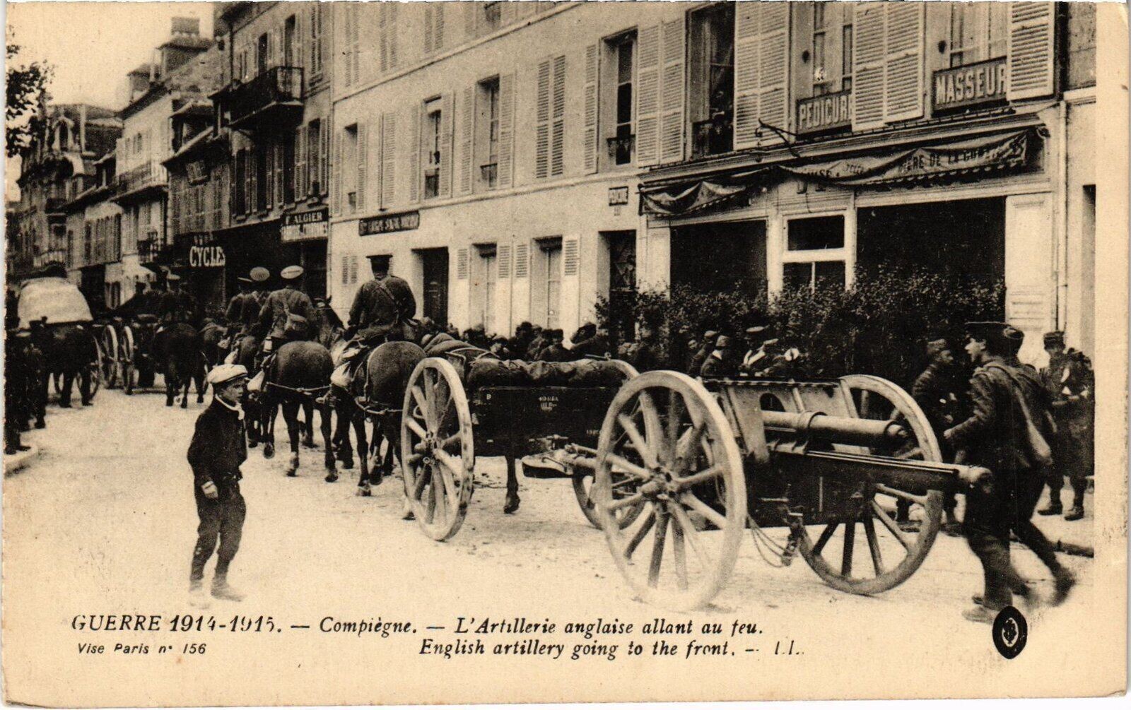 Version 3 : Guerre de 1914 Imprimeries Réunies ae Cliché Kol Artillerie Anglaise traversant Compiègne Msseur Nancy