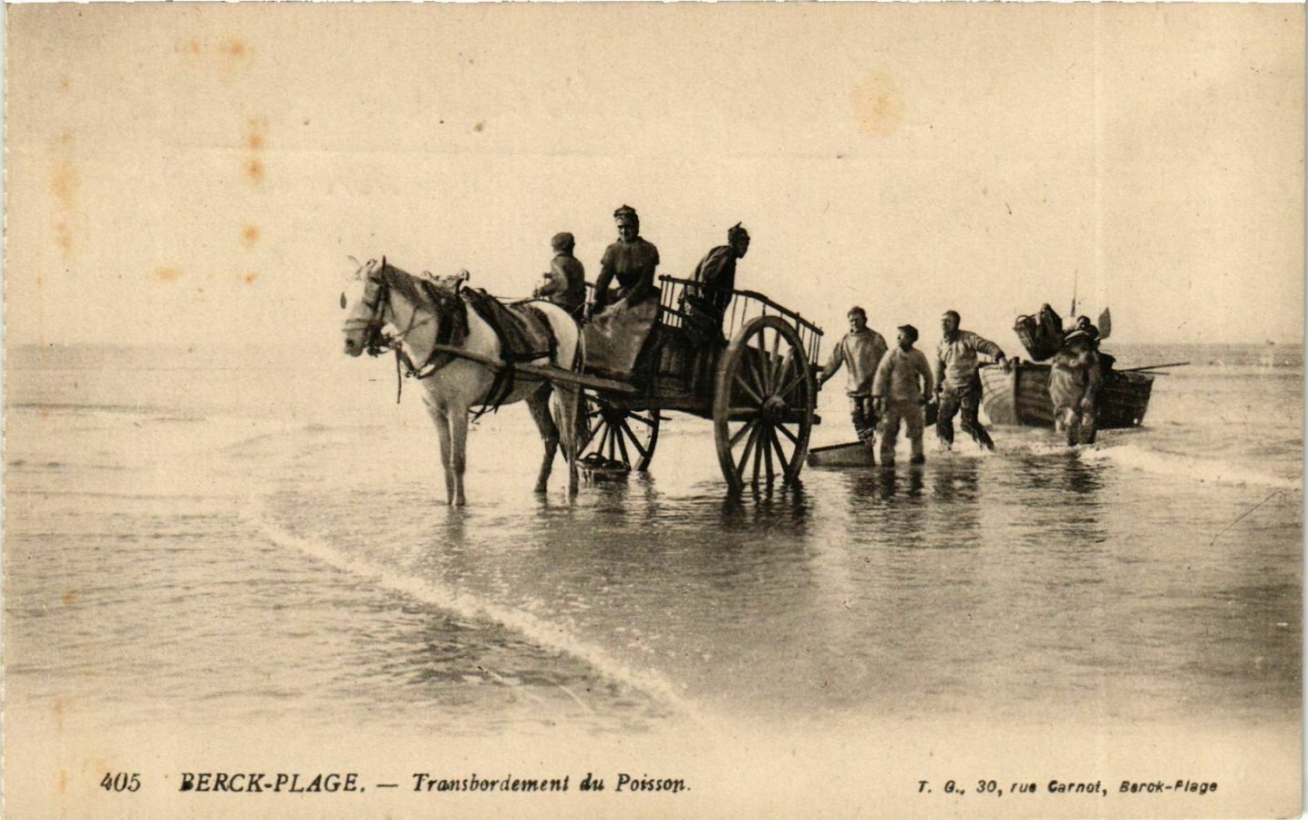 Version 2 : = 5e 405 BERCK-PLAGE, — Transbordement du Poisson. T. @., 30, rue Carnot, Berok-Flage