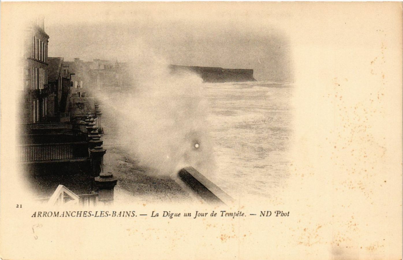 Version 1 : ARROMAINCHES-LES-BAINS. — La Digue un Jour de Temrète. — NDD ‘Phot