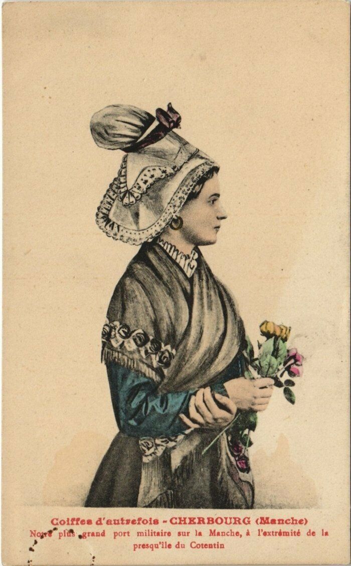 Version 2 : Posrèns Coiffes d'autrefois - CHERBOURG (Manche) sur la Manche, à l'extrémité de la du Cotentin