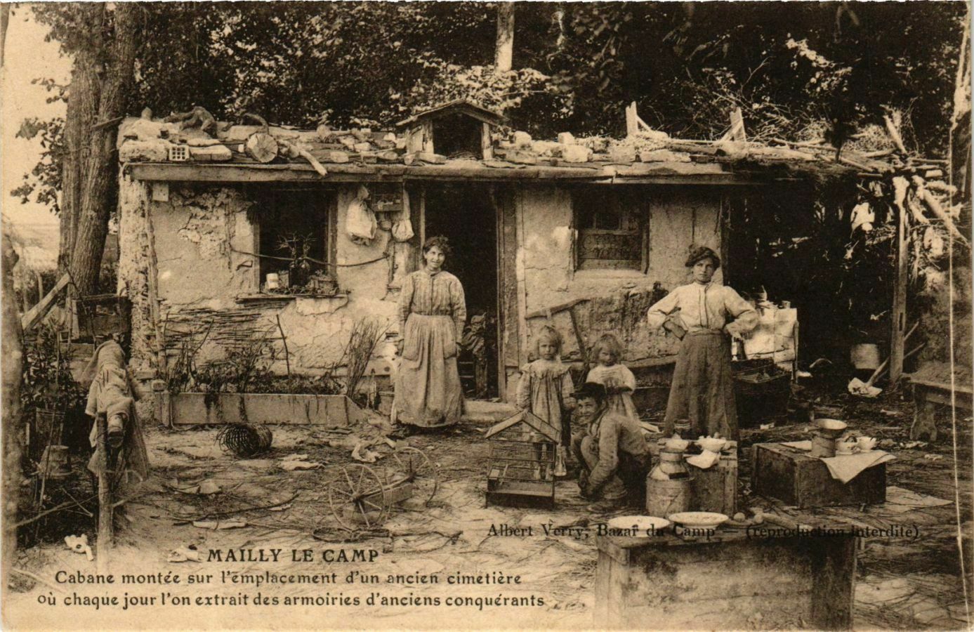 Version 1 : « Al = mu. — — Albert YF Briar Le 7 1: MAILLY LE CAMP ui Cabane montée sur l'emplacement d'un ancien cimetière où chaque jour l'on extrait des armoiries d'anciens conquérants