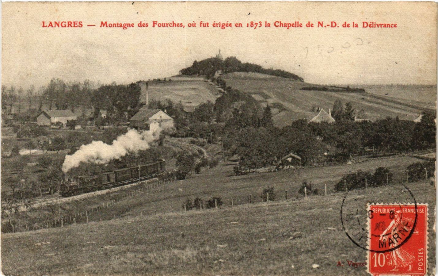 Version 3 : LANGRES Montagne des Fourches, où fut érigéc en ,873 la Chapelle de N.-D: de la Délivrance Repubiiore FRANC JSE NI MO 1