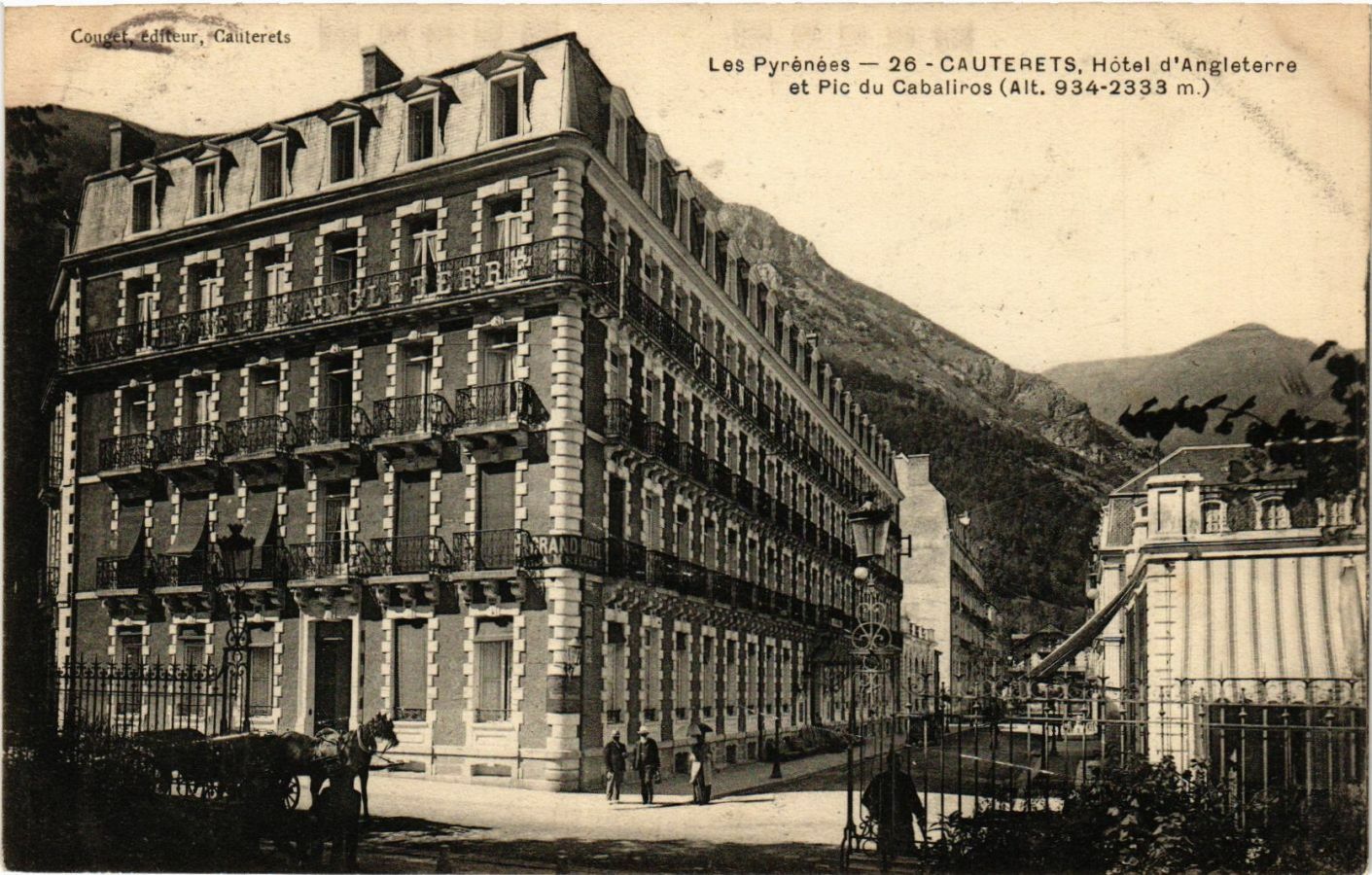 Version 3 : Couget, edfteur , Calterets Les Pyrënëes 26 CAUTERETS Hôtel d'Angleterre et Pic du Cabaliros (Alt. 934-2333 m.) JEiRe #CLE