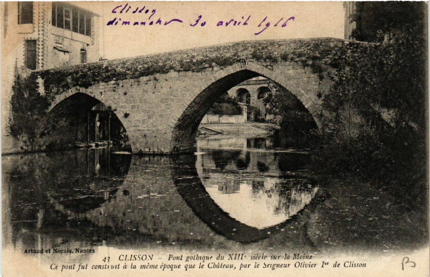 Version 3 : 4im ^4 '24 ) , 4,1 Artaud el Nozais. Nantes 43 CLISSOV Pont golbique du XIII siècle sur la Moine Ce pont fut constr utt à la méme époque que le Cbâteau, par le Segneur Olivier Ier de Clisson 0 avv