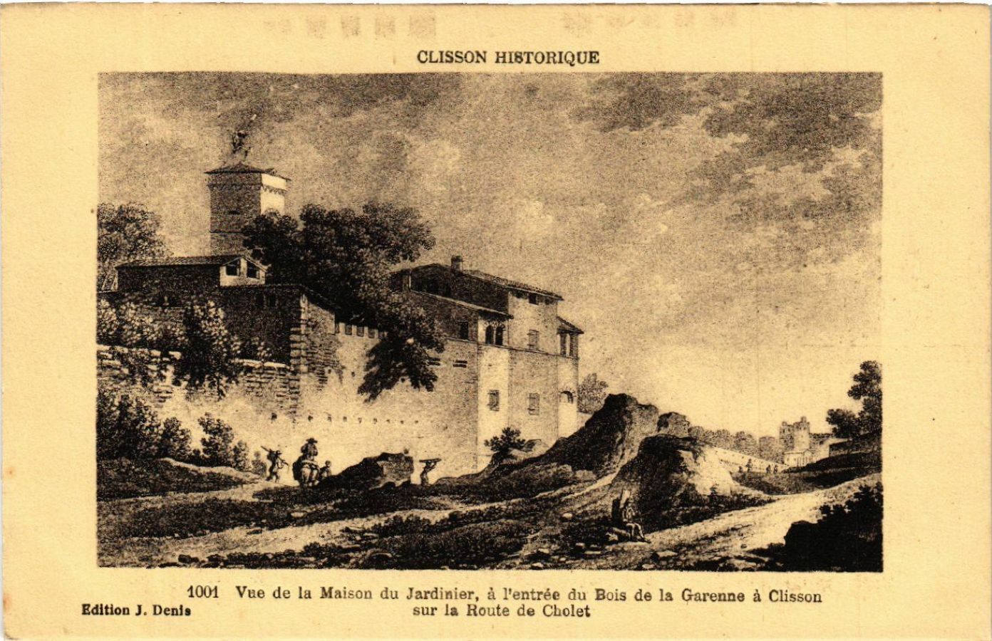 Version 2 : 1001 Vue de la Maison du Jardinier, à l'entrée du Bois de la Garenne à Clisson Edition J. Denis sur la Route de Cholet