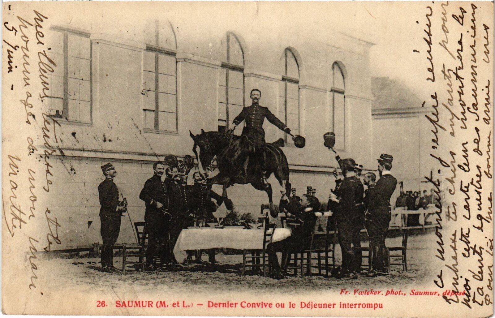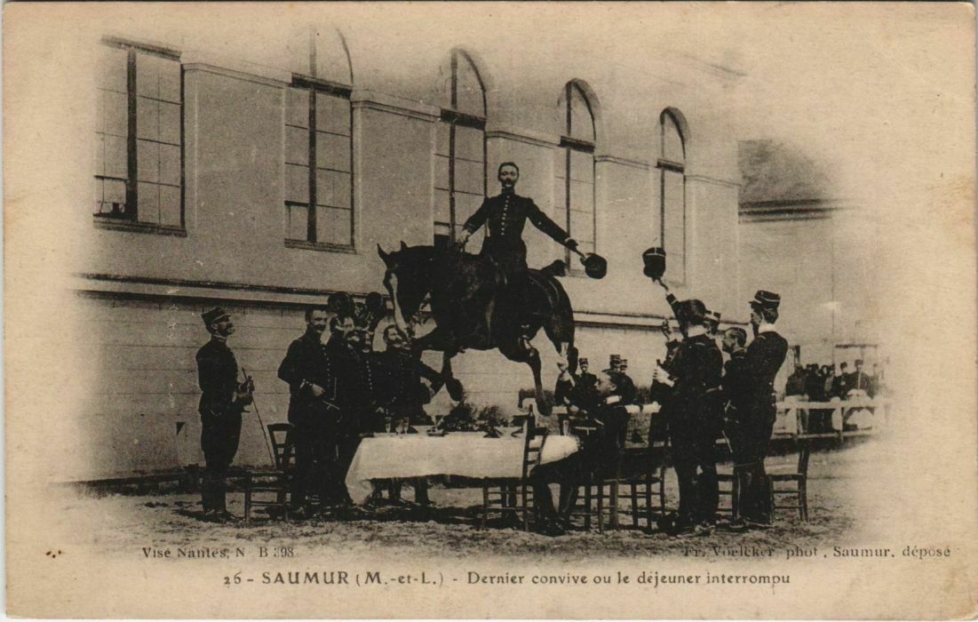 Version 3 : Fr. Voelcker, phot.. Saumur; deposé 26 SAUMUR (M.-et-L.) Dernier convive ou Ie déjeuner interrompu