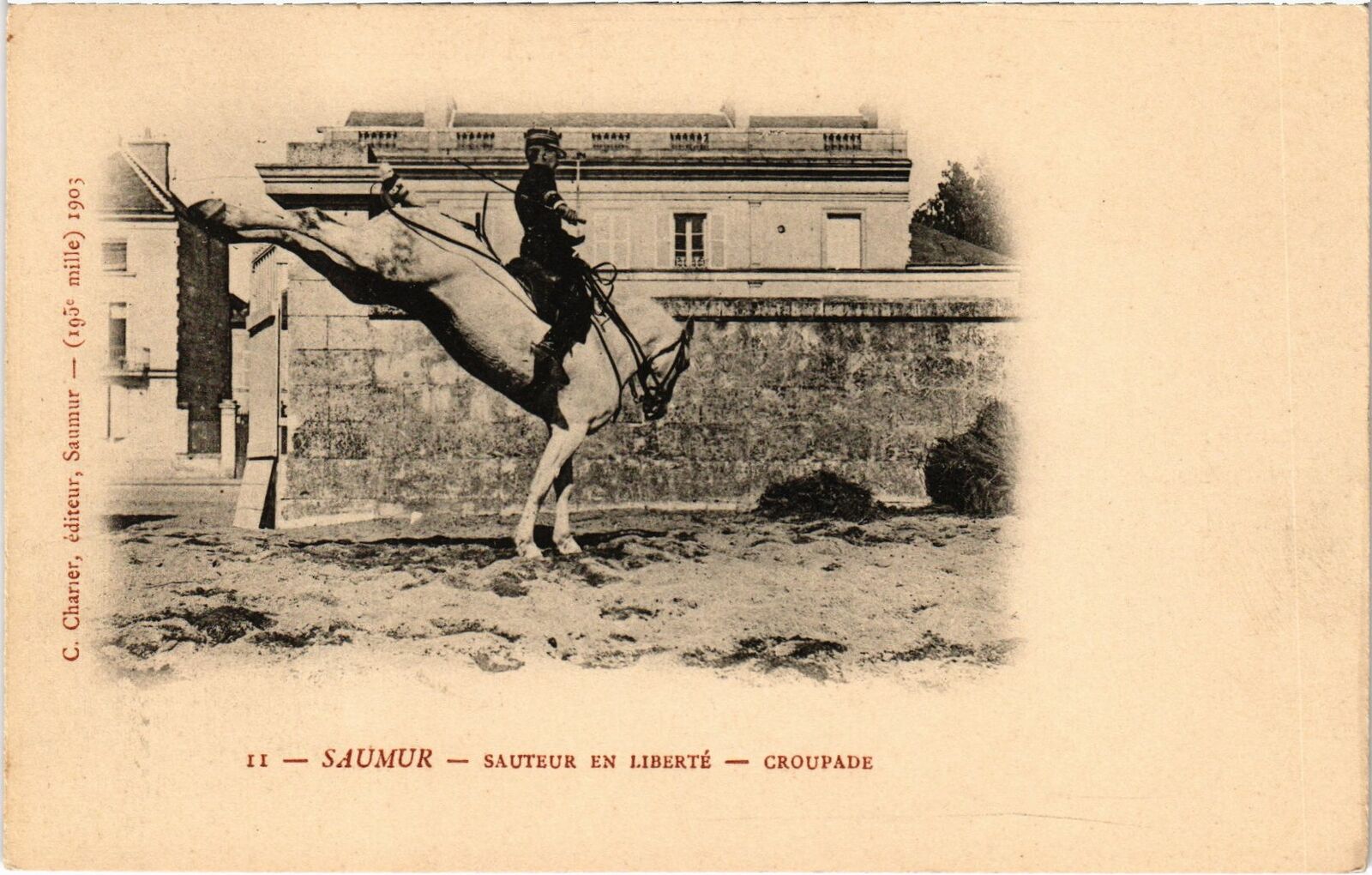 Version 1 : à] lle) 190 mi Ca C. Charier, éditeur, Saumur — (1 11 — SAUMUR — SAUTEUR EN LIBERTE — CROUPADE