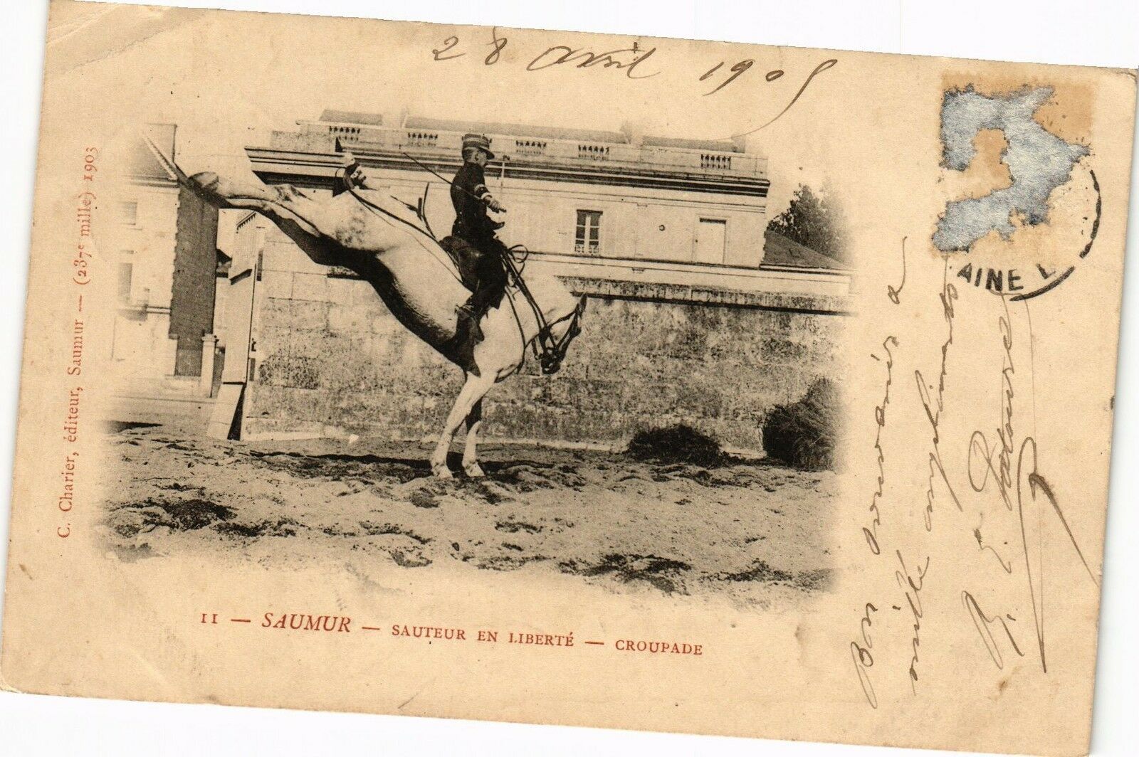 Version 2 : 5 Ile) 190 95e mi C. Charier, éditeur, Saumur — (1 Ir — SAUMUR — SAUTEUR EN LIBERTE — CROUPADE