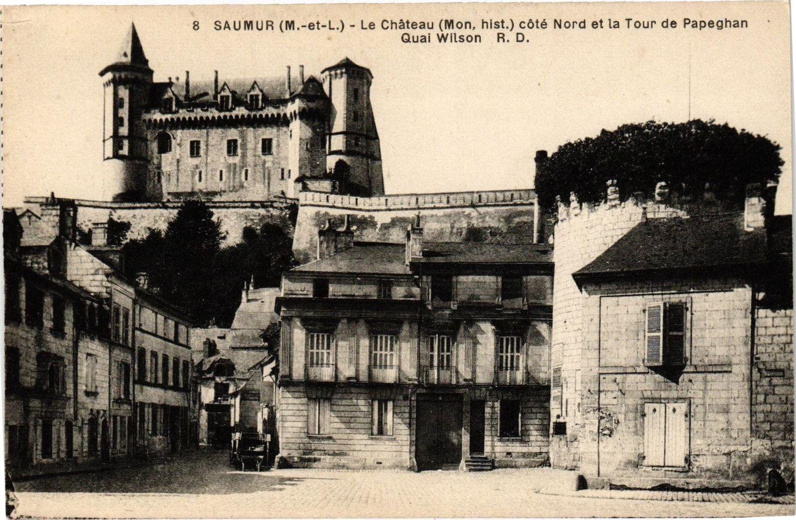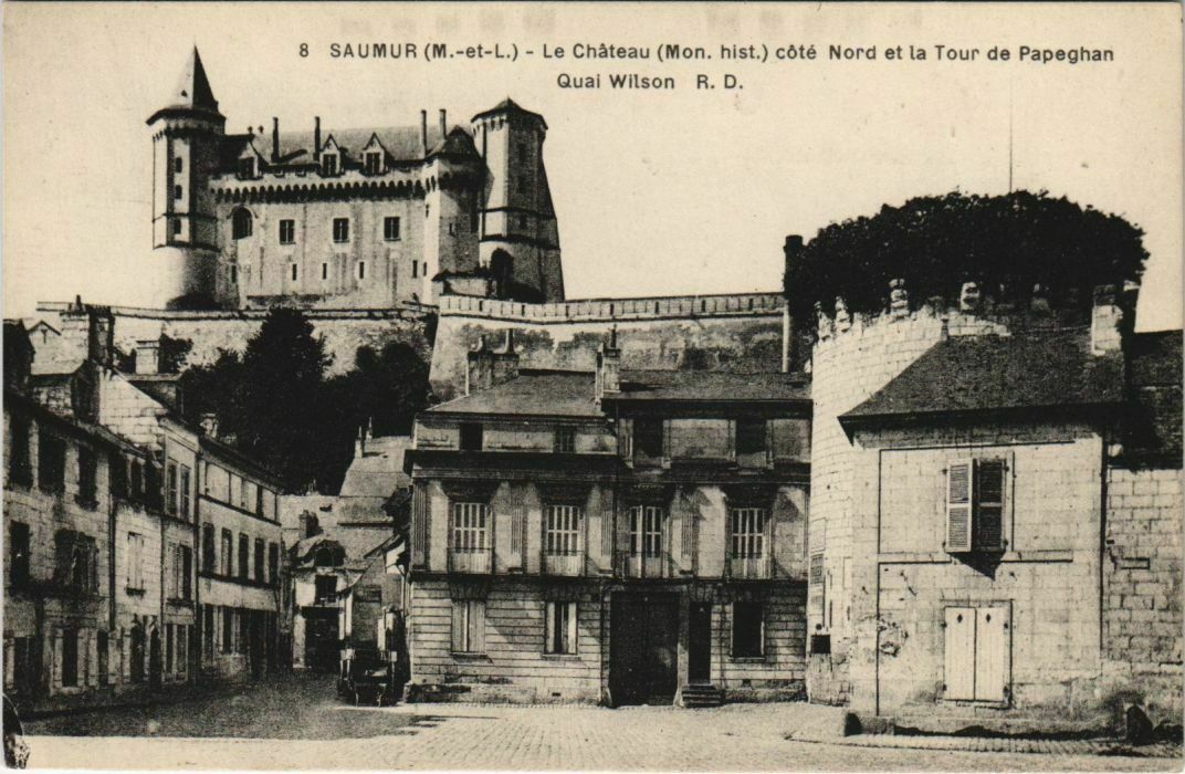 Version 1 : 8 SAUMUR (M.-et-L.) - Le Château (Mon, hist. ) côté Nord et la Tour de Papeghan Quai Wilson R. D. Rd if s 404 de, « me LS = e: na = Pasé£ NN