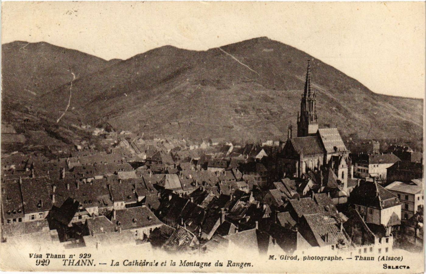 Version 2 : 18. Visa Thann n° 929 M. Girod, photographe. — Thann (Alsace) 9Y20 THANN. — La Cathédrale et la Montagne du Rangen. Suitcre