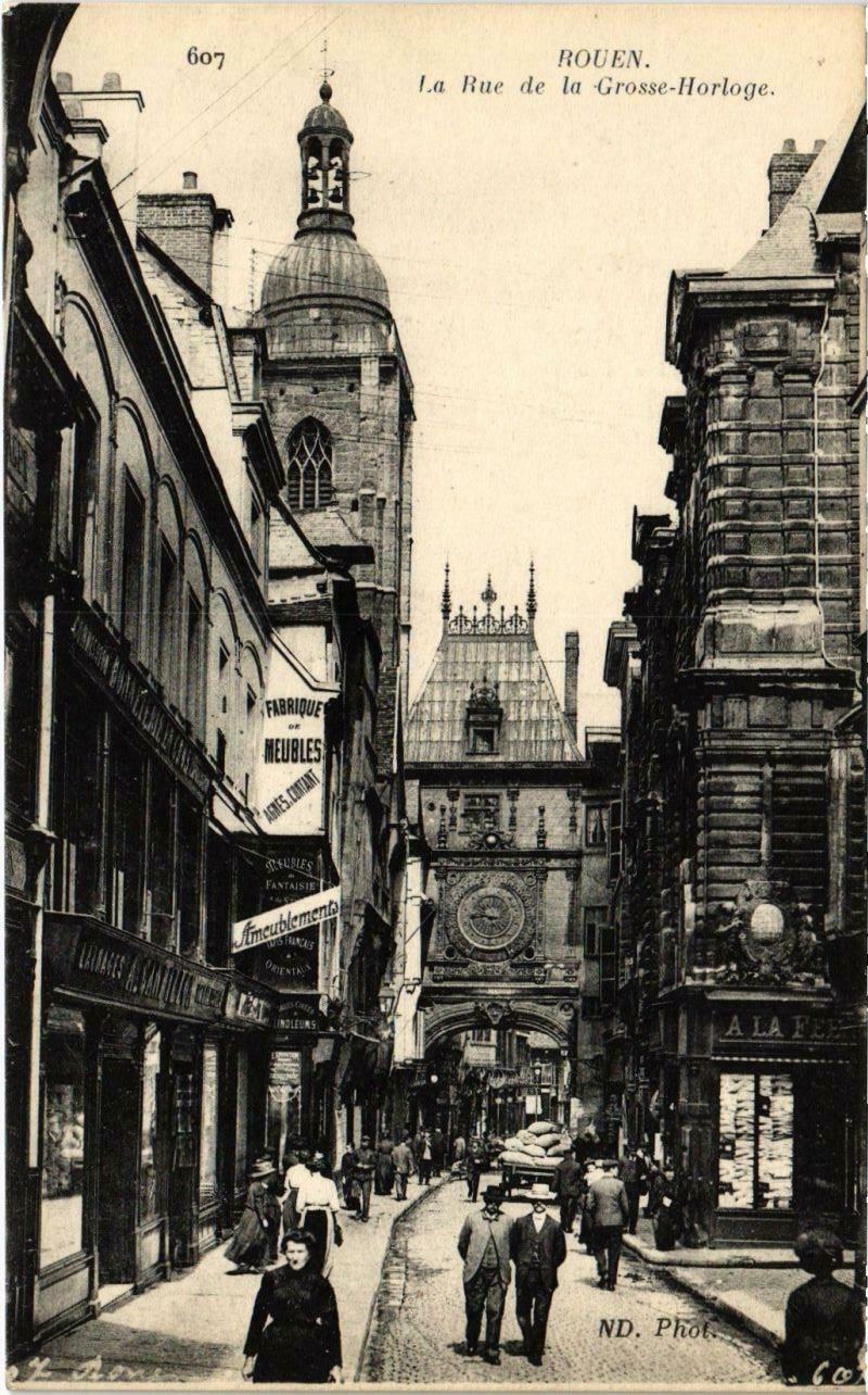 Version 3 : ROUEN La Rue de la Grosse- -Horloge. 'FABRIQUES hlubLes ND Phot. 607 Imncubkn