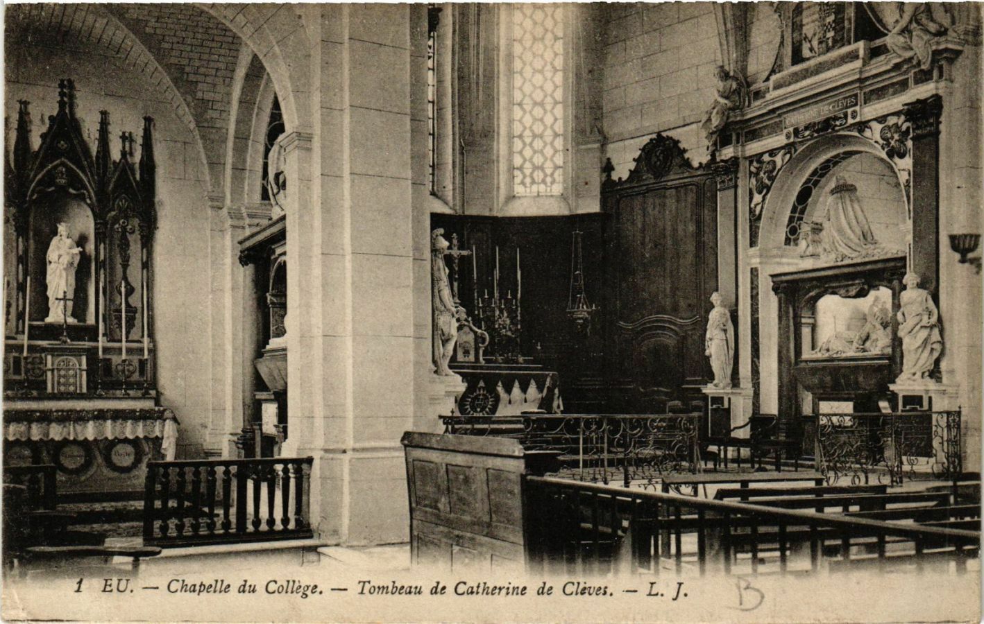 Version 3 : EU. Chapelle du Collège. Tombeau de Catherine de Clives . L. J.