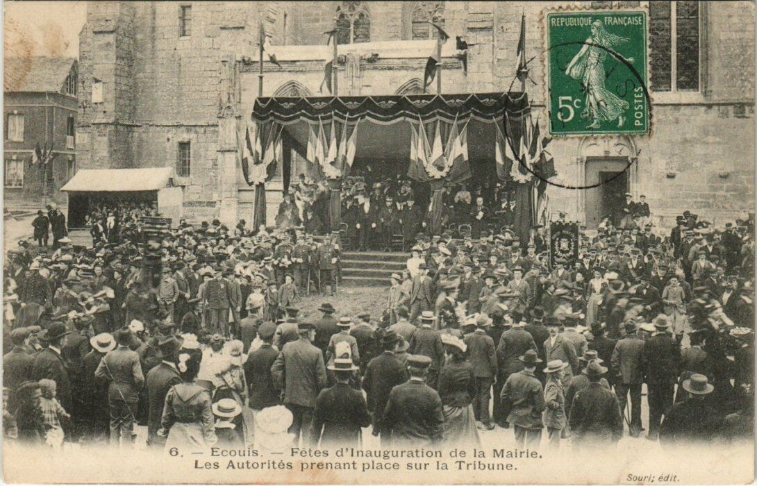 Version 3 : Repudiioue fraNCAIsE| 5s Ecouis Fetes d'Inauguration de la Mairie Les Autorités prenant place sur la Tribune. Sour;